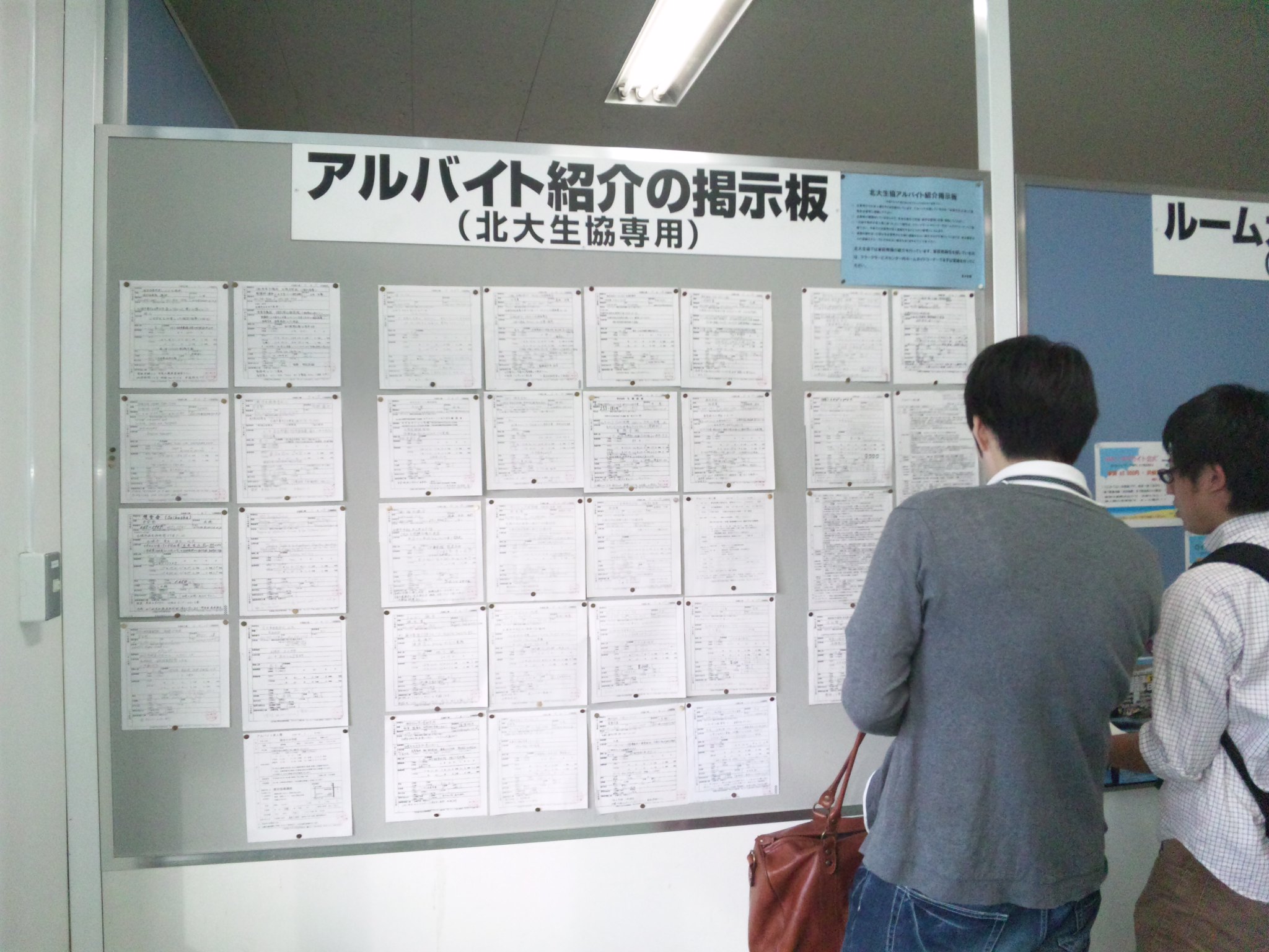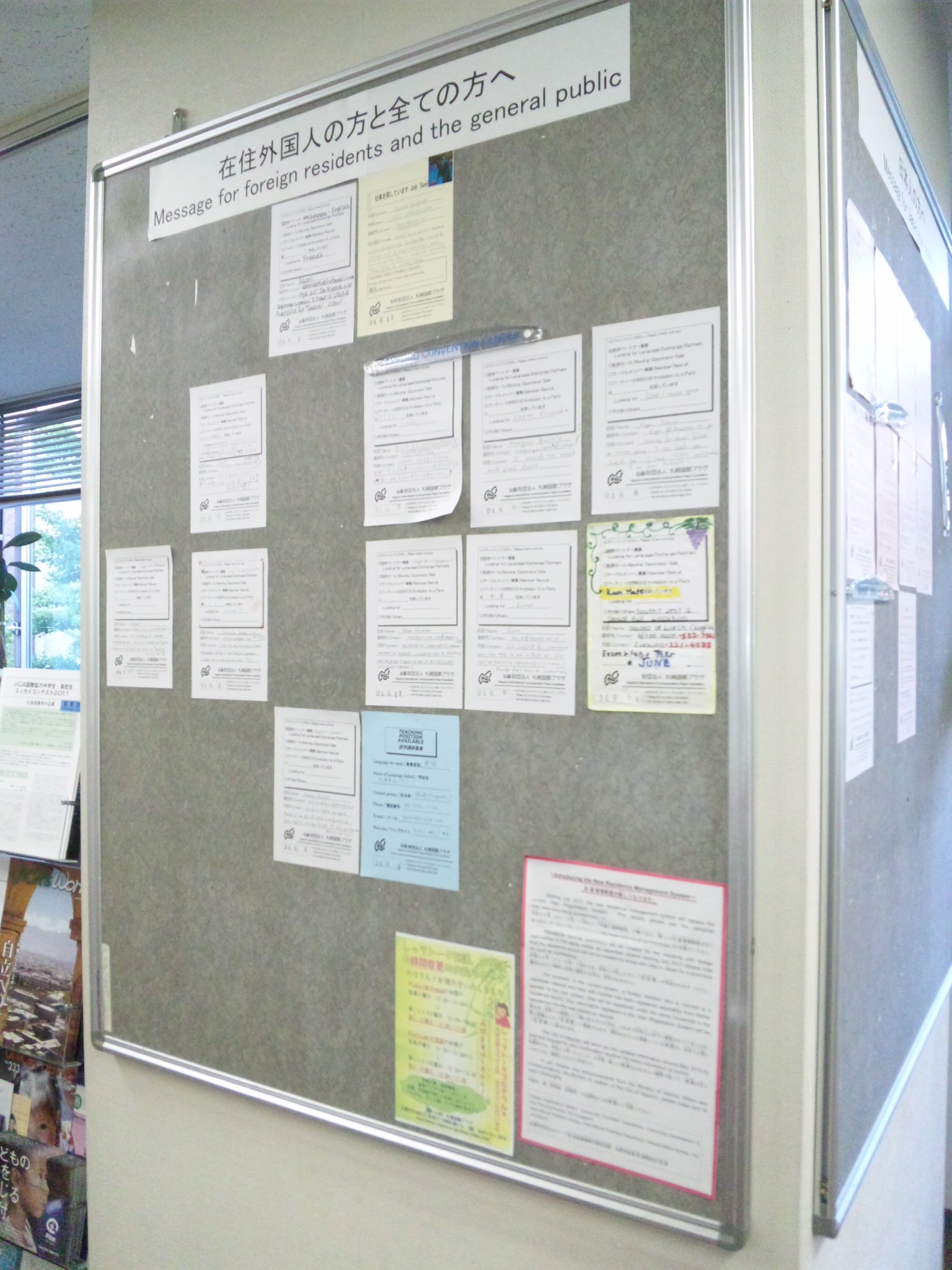 notice board on job offers (some of them are written in